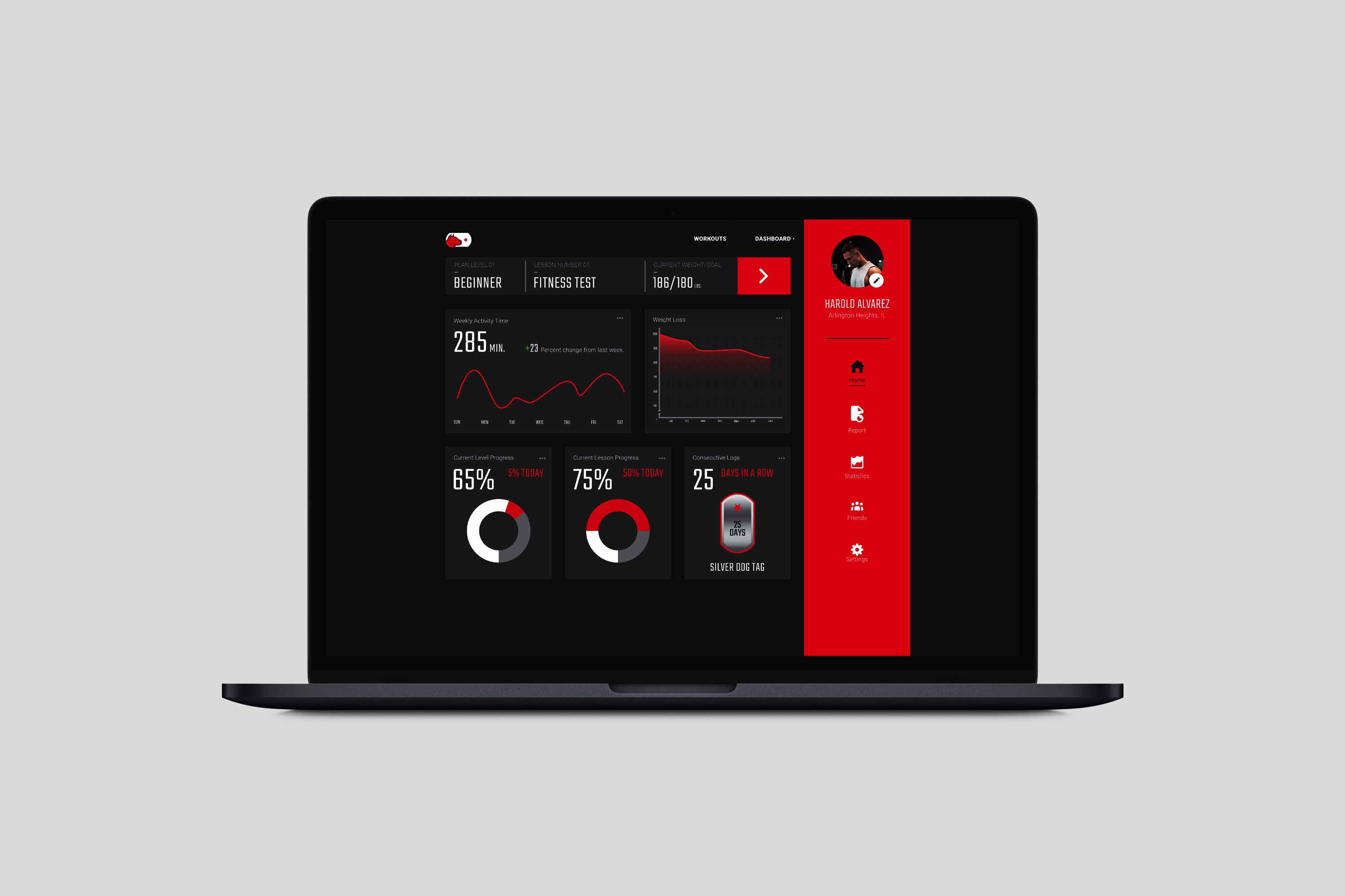 User control panel featuring progression charts, plan information, achievements and account settings.